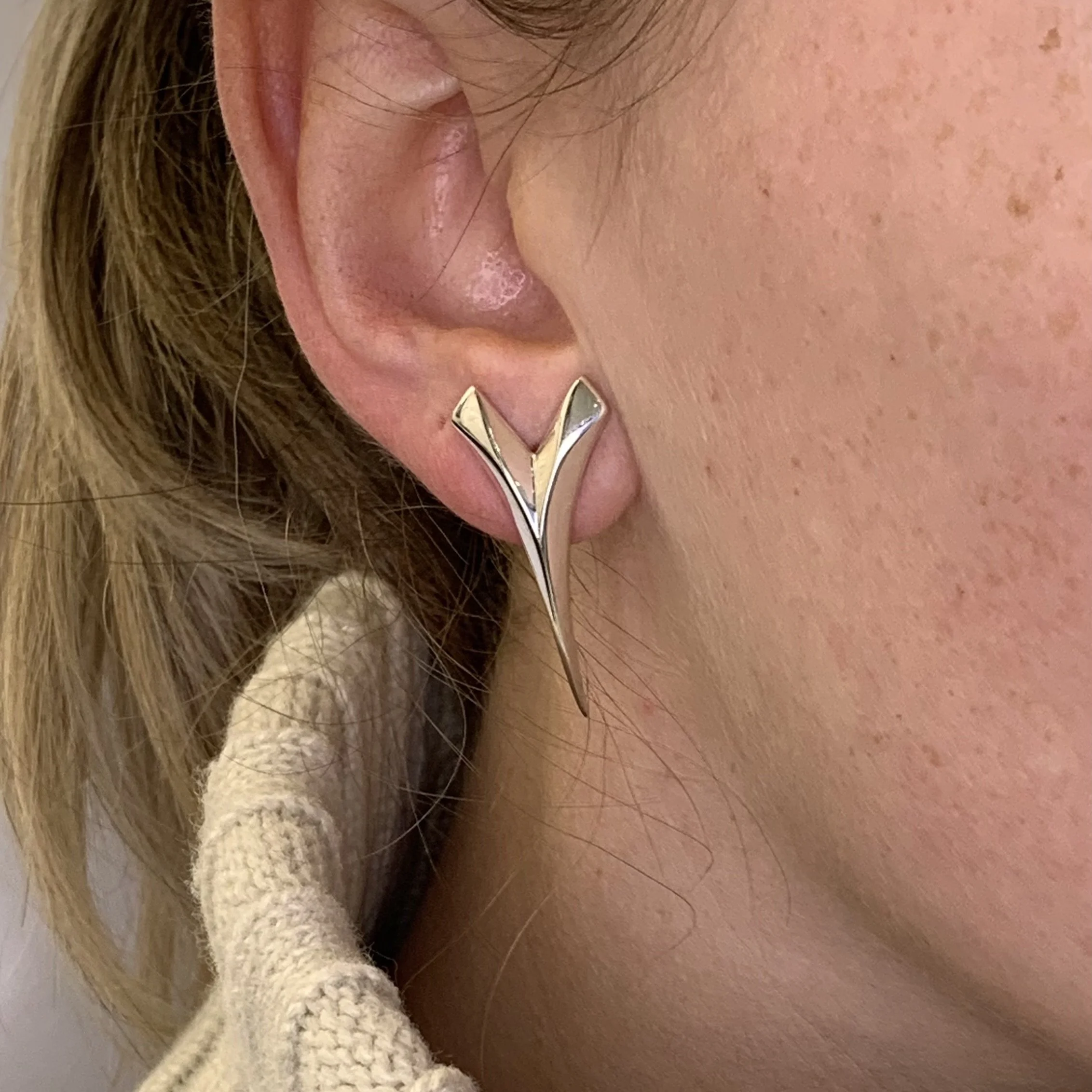 Our signature sharp, tapering lines, classic simplicity and eye-catching design combine in these drop earrings, with an understated v shape that adds dynamic flair.
